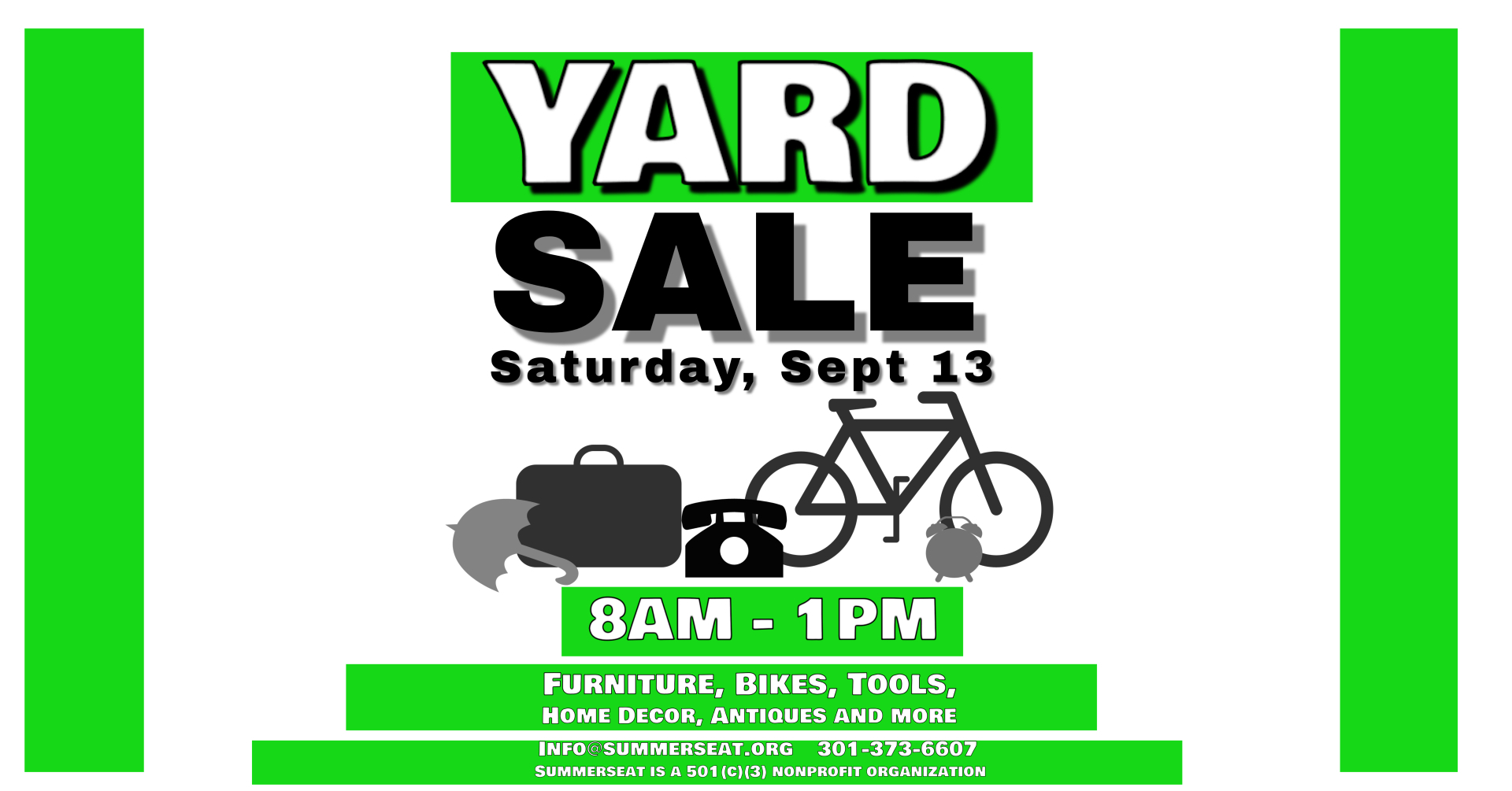 Join us for Summerseat Farm’s Annual Yard Sale, where treasure hunting meets community giving! This beloved event offers an incredible selection of furniture, tools, toys, antiques, home decor, and so much more-all generously donated by our supporters.